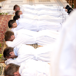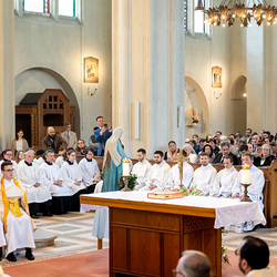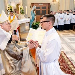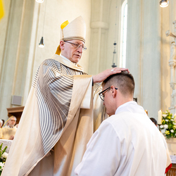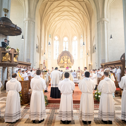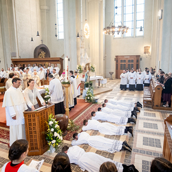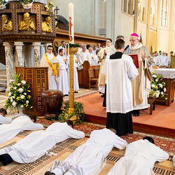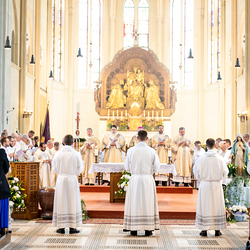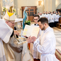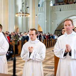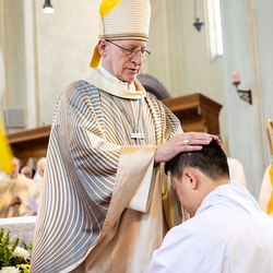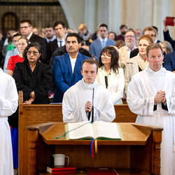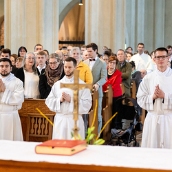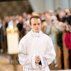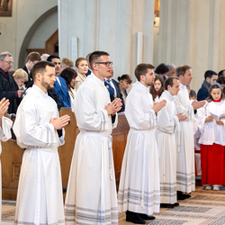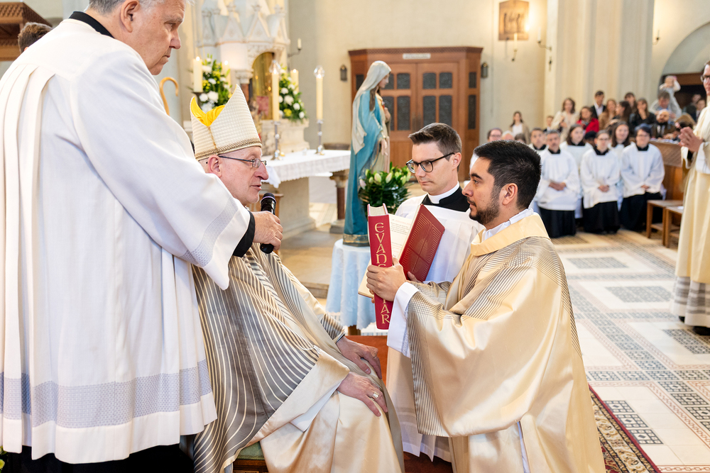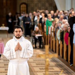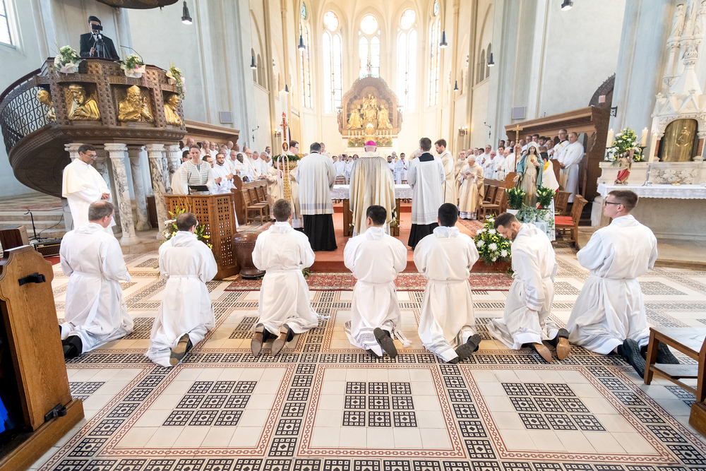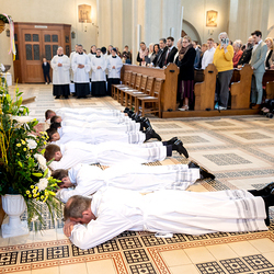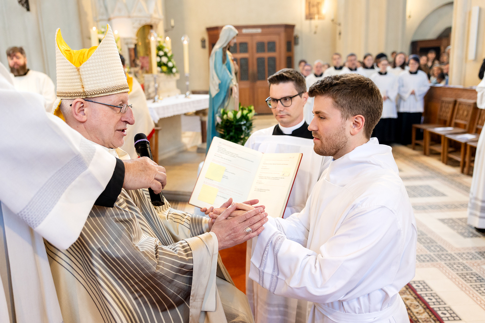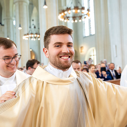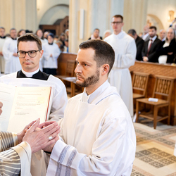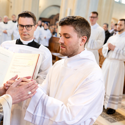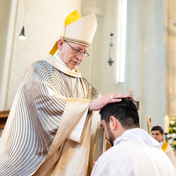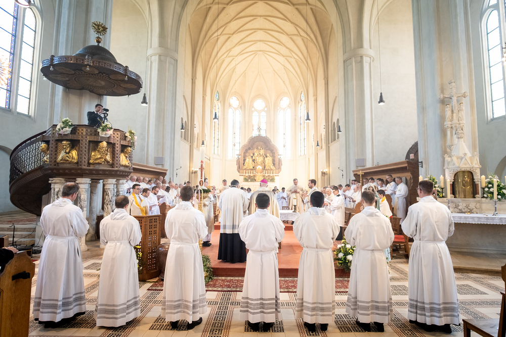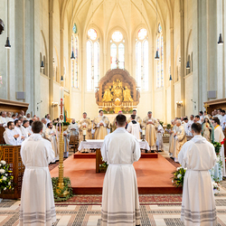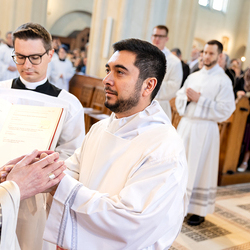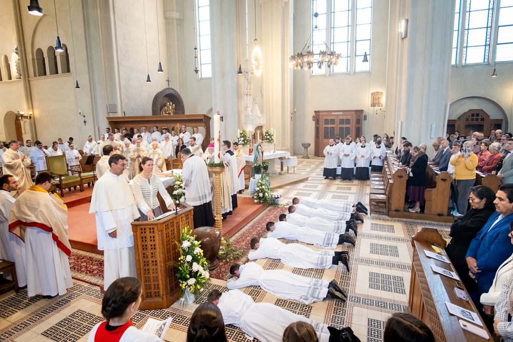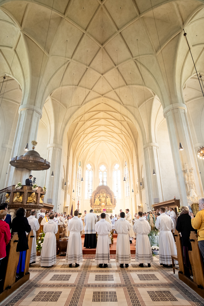 Am 10. Mai weihte Weihbischof Franz Scharl in der Pfarrkirche St. Leopold Donaufeld sieben Männer zu Diakonen für die Erzdiözese Wien. Die Kandidaten kommen aus verschiedenen Gemeinschaften: drei aus dem Wiener Priesterseminar, einer aus dem Benediktinerpriorat St. Josef in Maria Roggendorf und drei aus dem diözesanen Missionskolleg „Redemptoris Mater". Manuel Rennhofer, Joachim Loshehand und Julius Moses Münzer kommen aus dem Wiener Priesterseminar, P. Leo Maria Zehetgruber gehört dem Benediktinerpriorat St. Josef in Maria Roggendorf an drei weitere Kandidaten stammen aus dem diözesanen Missionskolleg „Redemptoris Mater“. Diese Vielfalt unterstreicht die Breite der geistlichen Berufungen in der Erzdiözese. Wir waren mit der Kamera dabei.