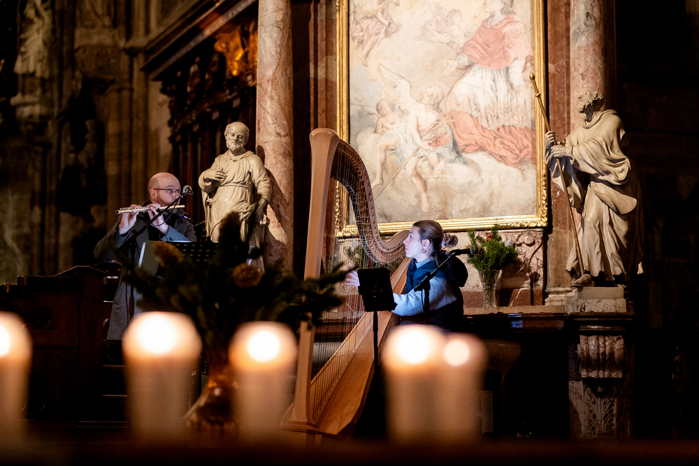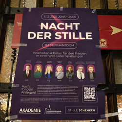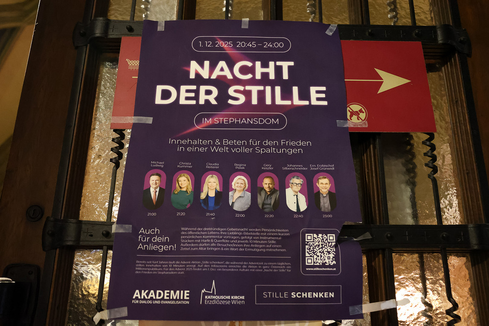 Unter dem Titel "Stille schenken" fand am 1. Dezember im Wiener Stephansdom eine außergewöhnliche Veranstaltung statt. Bekannte Persönlichkeiten präsentierten ihre bevorzugten Bibelpassagen, begleitet von persönlichen Gedanken. Im Anschluss wurden Harfen- und Querflötenklänge dargeboten, gefolgt von einer zehnminütigen Stille. Wir waren mit der Kamera dabei.