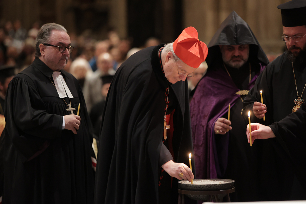 An der Feier haben neben Kardinal Schönborn auch der päpstliche Gesandte in Österreich, Nuntius Erzbischof Pedro Lopez, der evangelische Bischof Michael Chalupka, der armenisch-apostolische Bischof und der Vorsitzende des Ökumenischen Rates der Kirchen in Österreich, Tiran Petrosyan, der griechisch-orthodoxe Metropolit und Vorsitzende der Orthodoxen Bischofskonferenz in Österreich, Arsenios (Kardamakis), sowie Chorepiskopus Emanuel Aydin von der Syrisch-Orthodoxen Kirche und der Wiener Ostkirchen-Generalvikar, der ukrainisch-katholische Geistliche Yurij Kolasa, teilgenommen. Die Orthodoxe Kirche der Ukraine (OKU) war durch Bischof Antoniy (Firley) von Chernihiv und Nizhyn repräsentiert. Ebenfalls aus der Ukraine gekommen war der griechisch-katholische Bischof Petro Holinej von Kolomyia.