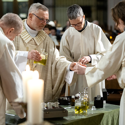 Am Mittwoch feierten die katholischen Gemeinden und Gemeinschaften des 18. Bezirks im Rahmen einer speziellen Messfeier, die von Radio Maria übertragen wurde, in der Pfarrkirche Weinhaus die Verteilung die vom Herrn Erzbischof geweihten Heiligen Öle. Dechant P. Arkadiusz Zakręta CM stand der Feier vor. Wir waren mit der Kamera dabei.